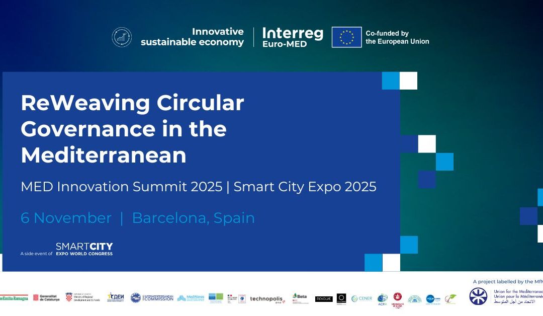 The Mediterranean is at the forefront of the climate and resource challenge, and cities across the region are seeking new ways to build resilience while promoting sustainable prosperity. On 6 November, the Interreg Euro-MED Innovative Sustainable Economy Mission will host the second edition of the MED Innovation Summit at the Smart City Expo World Congress in Barcelona. The event will bring together innovators, policymakers, entrepreneurs, and local actors to explore how circular economy principles can drive systemic change.