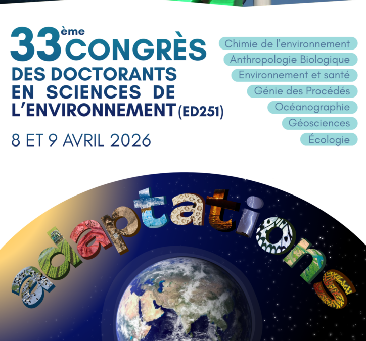 Le 33rd Congress of the Environmental Sciences Doctoral School will be held on 8 and 9 April 2026 on the Luminy campus (Marseille) in the OCEANOMED amphitheatre (see Access). It will be organised by the MIO (Mediterranean Institute of Oceanology).